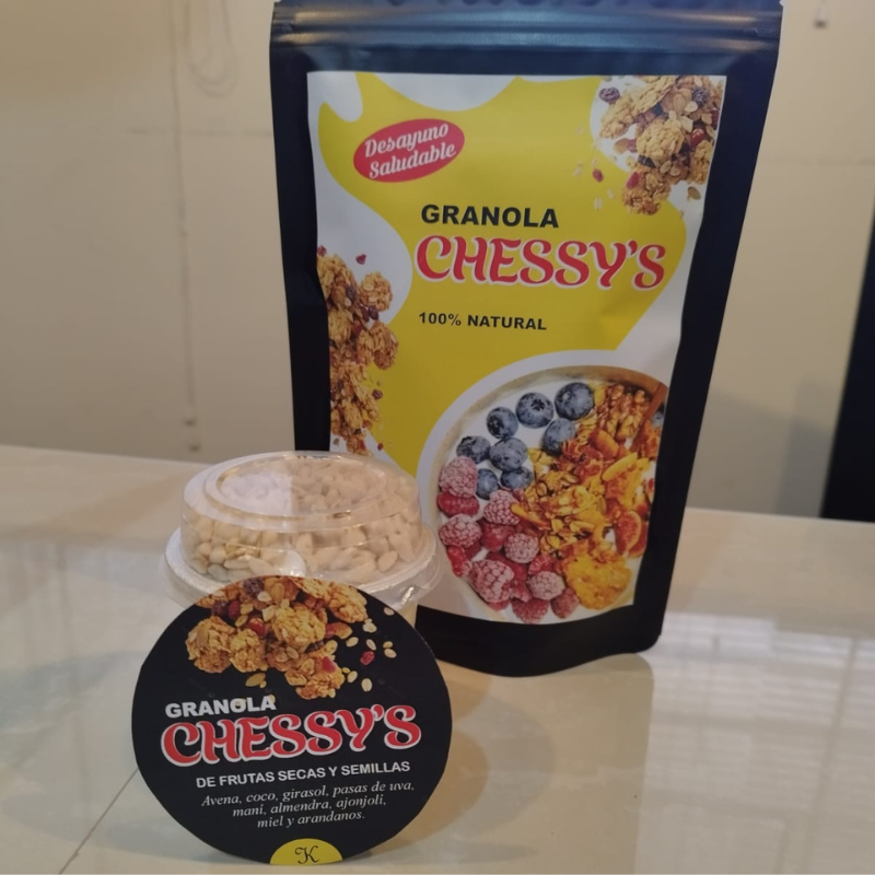 Granola Chessy’s es la combinación perfecta de sabor, energía y bienestar. Elaborada con una mezcla selecta de avena integral, frutos secos, semillas y un toque natural de miel (o endulzante, si prefieres otra palabra), es el snack ideal para comenzar tu día o recargar energías en cualquier momento.